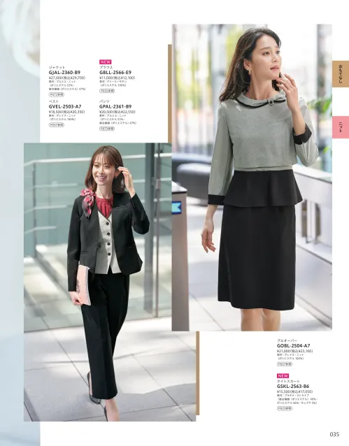 ノーカラージャケット サーヴォGJAL-2360のサイズ表