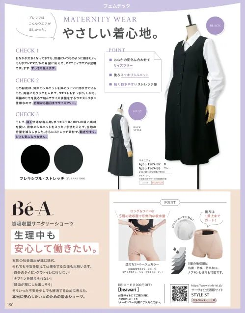 プレママはこんなウエアが欲しかった。やさしい着心地。おなかが大きくなってきても、快適にいつものように働きたい。そんなプレママたちの希望に応えて、新しいシルエットのマタニティが登場です。