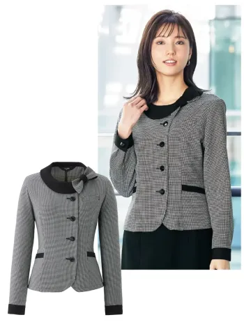 en joie OFFICEFUL COLLECTIONから、1枚で洗練されたオフィススタイルが完成する長袖オーバーブラウスです。ポリエステル100%のチドリチェック素材にストレッチ機能を搭載し、リバーシブル2WAYリボンでジャケット見えする上品なデザインを実現。一般オフィスから接客業務まで幅広いシーンで美しいシルエットと快適な着心地をお届けします。