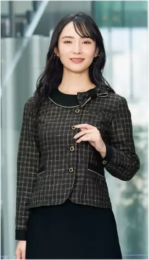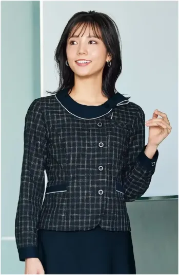 en joie OFFICEFUL COLLECTIONの長袖オーバーブラウスは、1枚でジャケット見えが叶う上品なオフィススタイルを実現。複雑な色味を織り込んだカスリブロックチェックとリバーシブル2WAYリボンで、秋冬シーズンにぴったりな洗練された印象を演出します。