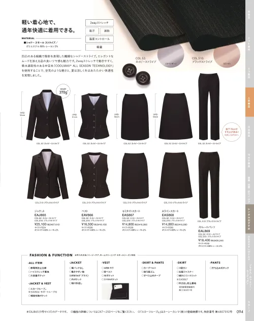 ジャケット カーシーカシマEAJ865のサイズ表