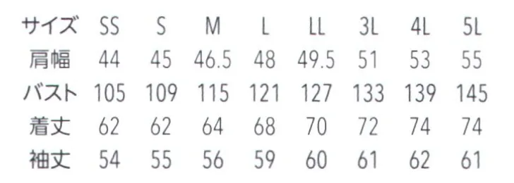 ブルゾン(兼用) アルベチトセUN-0409のサイズ表
