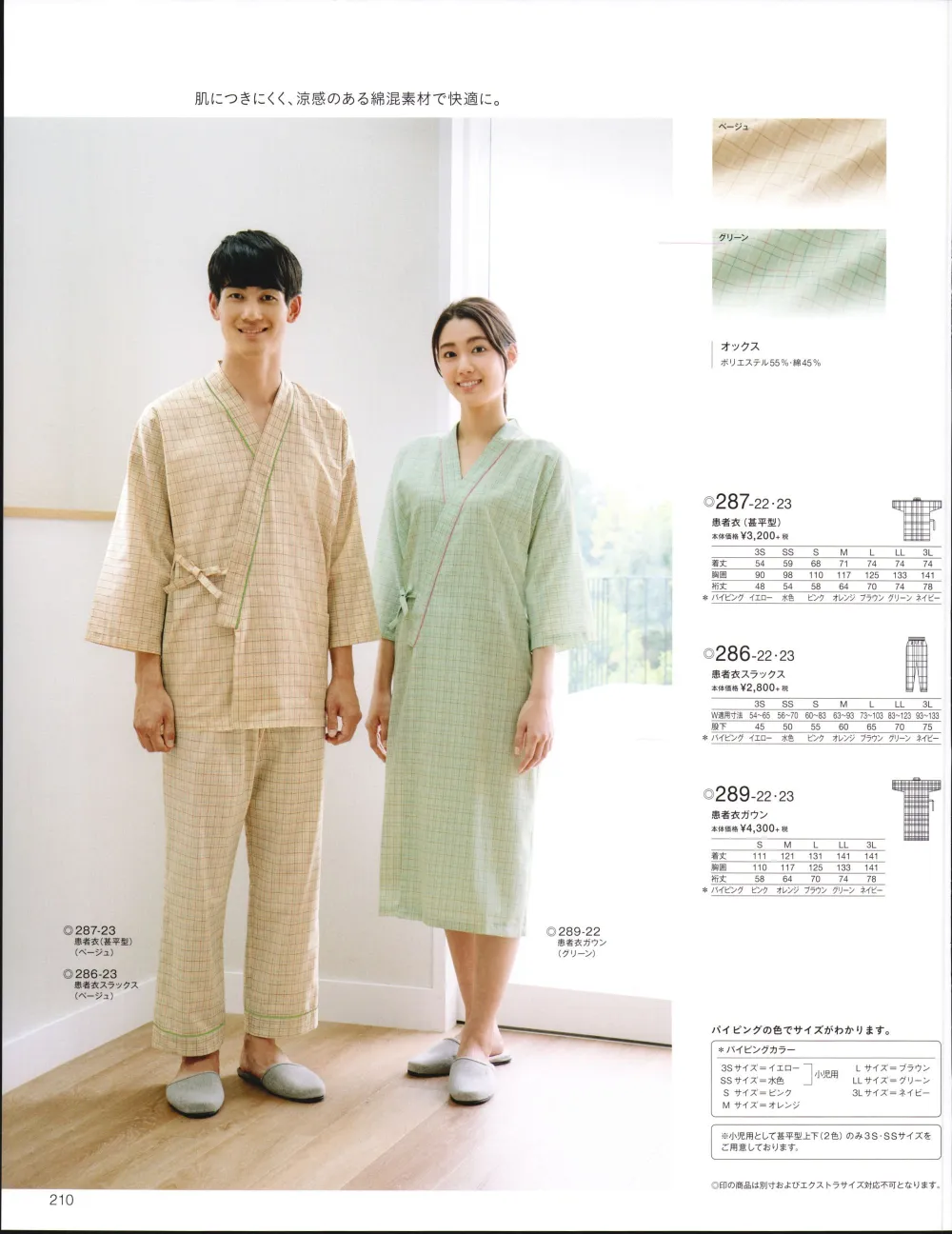 患者衣上衣(甚平型上着)・チェック柄 KAZEN287-22のサイズ表