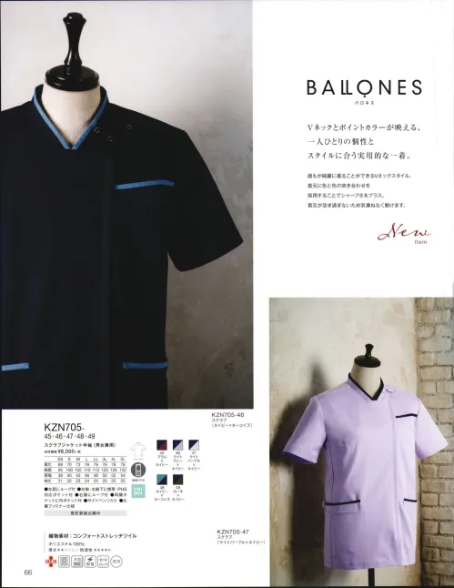 スクラブジャケット半袖(男女兼用) KAZENKZN705-46のサイズ表