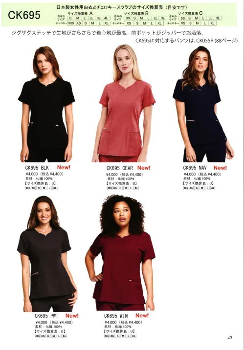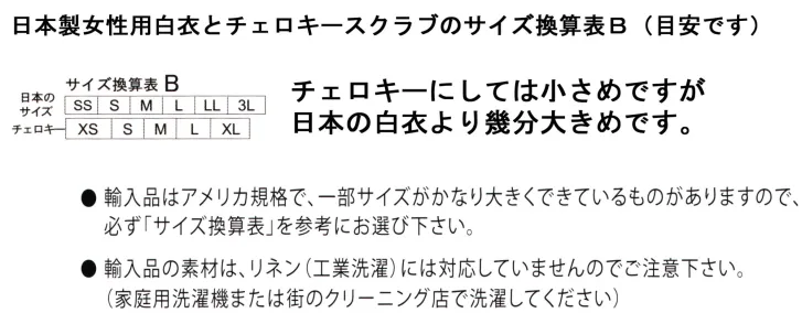 半袖無地 CHEROKEE チェロキーCK695PWTのサイズ表