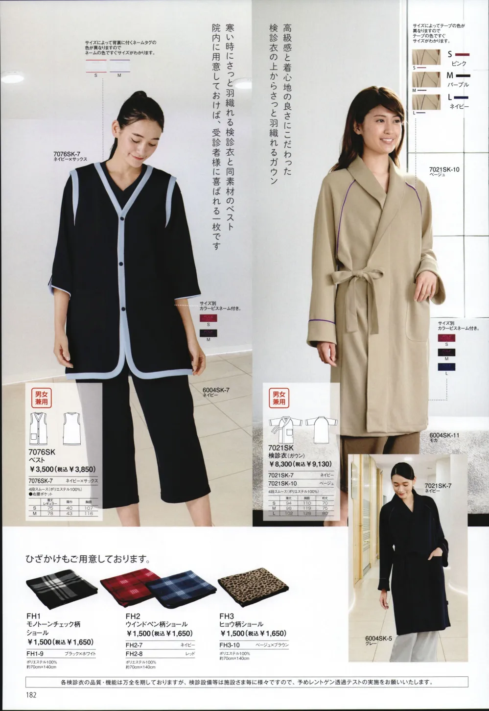 寒い時にさっと羽織れる検診衣と同素材のベスト。院内に用意しておけば、受診者様に喜ばれる一枚です。