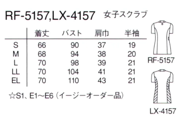 女子スクラブ ナガイレーベンRF-5157のサイズ表