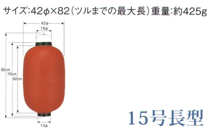 ビニール提灯 15号長型(赤・黒枠) 鈴木提灯B115-6のサイズ表