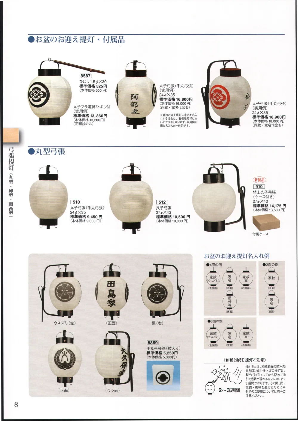 お盆のお迎え提灯。※画像は見本です。こちらの商品は、白無地になります。※価格は、正面紋の名入れ代を含みます。