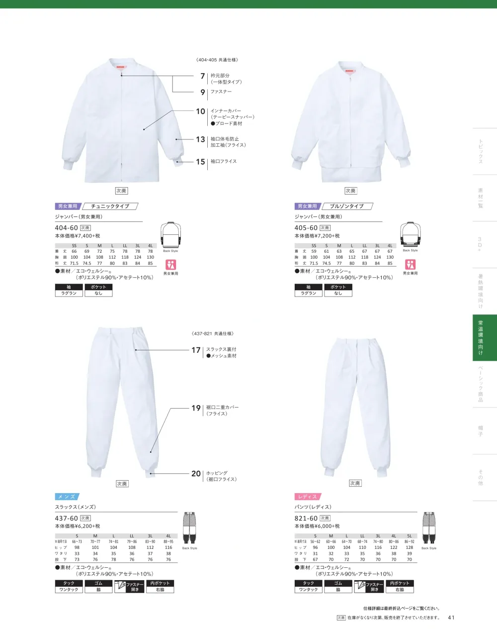 ジャンパー(男女兼用)チュニックタイプ KAZEN404-60のサイズ表