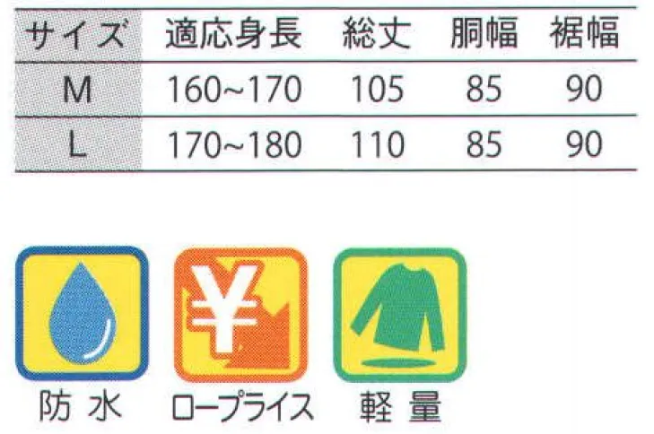 エバライトソフト胸付前掛 フードマイスターMST77592のサイズ表