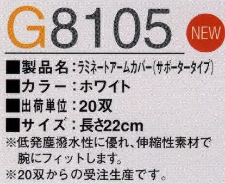 食品白衣jp ラミネートアームカバー(サポータータイプ)(1袋20双入)(受注生産) ガードナー G8105 食品白衣の専門店