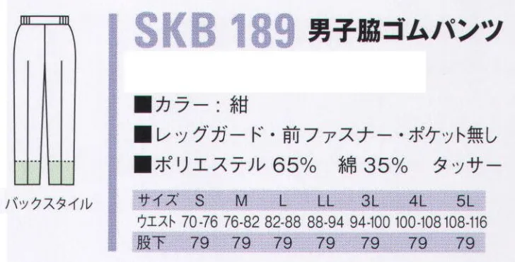 男子脇ゴムパンツ(受注生産) サカノ繊維SKB189のサイズ表