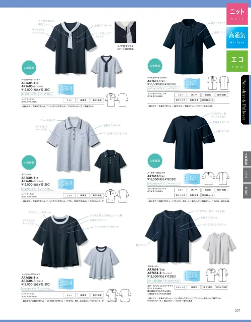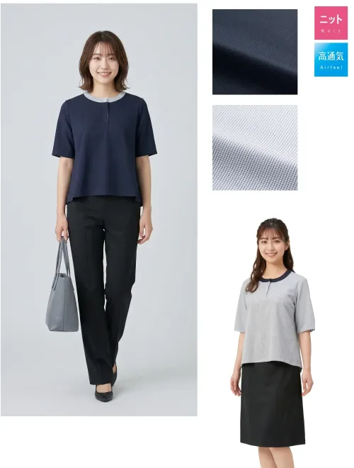 ノーカラーポロシャツ アルファピアAR7606-1