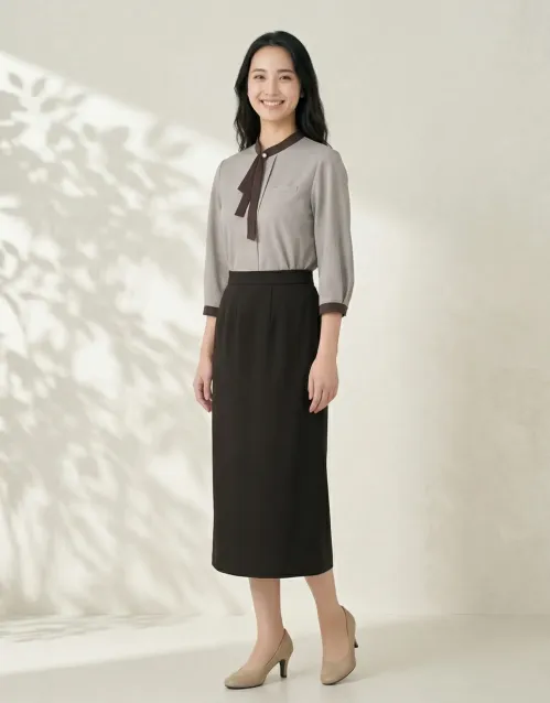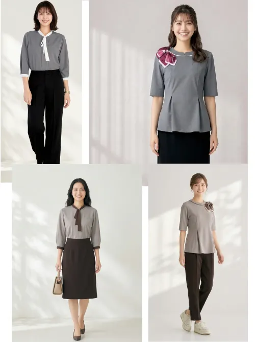 エレガントなリボンデザインが特徴的なソフトリコットリボンカラーポロシャツです。高通気性93.2cc/cm2secと吸汗速乾機能で、上品なスタイルと快適な着心地を両立します。