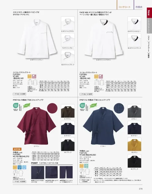 作務衣(上衣) ボンマックスFJ0709Uのサイズ表