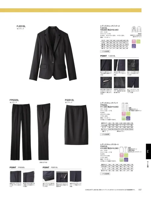 レディスストレッチスカート ボンマックスFS2012Lのサイズ表