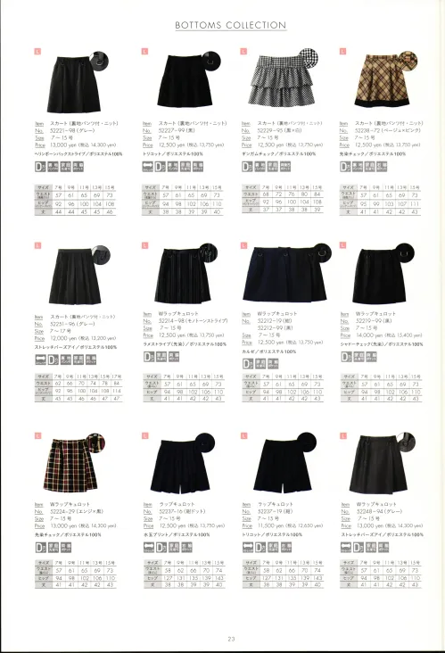 スカート(裏地パンツ付・ニット) ボストン52221のサイズ表