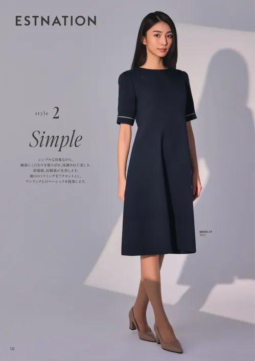 「ESTNATION×FOLK」のコラボレーションシリーズ。シンプルな印象の中に細部へのこだわりを散りばめ、洗練された美しさと信頼感を両立。ポリエステル100%のESリュクスモーション素材を採用し、フロント受付から施術まで幅広い業務に対応。袖口のトリミングがさりげないアクセントとなり、上質な着用感を演出します。
