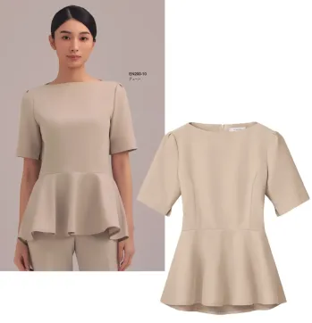 ・ウエストの切り替えから広がるペプラムシルエットで美しさと体型カバーを両立