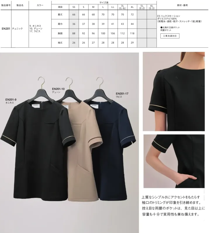ESTNATION×FOLKのコラボレーションシリーズ。シンプルな印象の中に細部へのこだわりを散りばめ、洗練された美しさと信頼感が共存するチュニックです。フロント受付から施術まで幅広い業務に対応できるデザインで、絶妙なバランスに仕上げました。