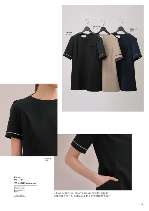 ESTNATION×FOLKのコラボレーションシリーズ。シンプルな印象の中に細部へのこだわを散りばめ、洗練された美しさと信頼感が共存するチュニックです。フロント受付から施術まで幅広い業務に対応できるデザインで、絶妙なバランスに仕上げました。