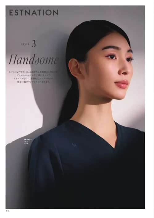 ・着用者一人ひとりの顔立ちや仕草が際立ち、目を見て会話をする所作までも美しく映える上質なスクラブ