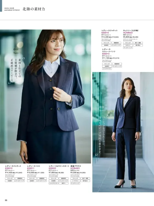 ■形状特長制電ストレッチ裏地、背抜き仕様、左胸ポケット、両腰ポケット、内ポケット2コ