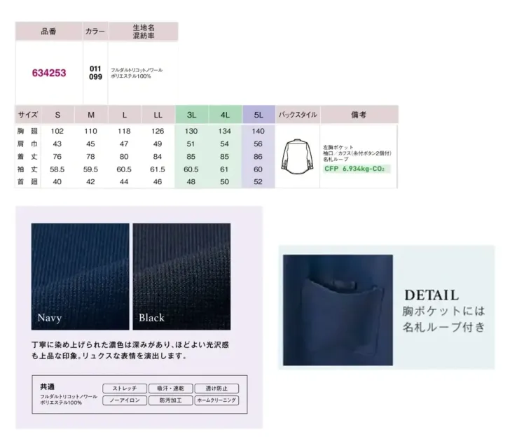■素材特長ストレッチ 吸汗・速乾 透け防止 防汚加工 ノーアイロン ホームクリーニング