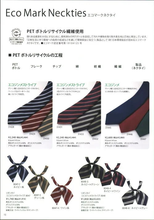 エコマークネクタイ(エコジンメストライプ/エンジ系) 31431