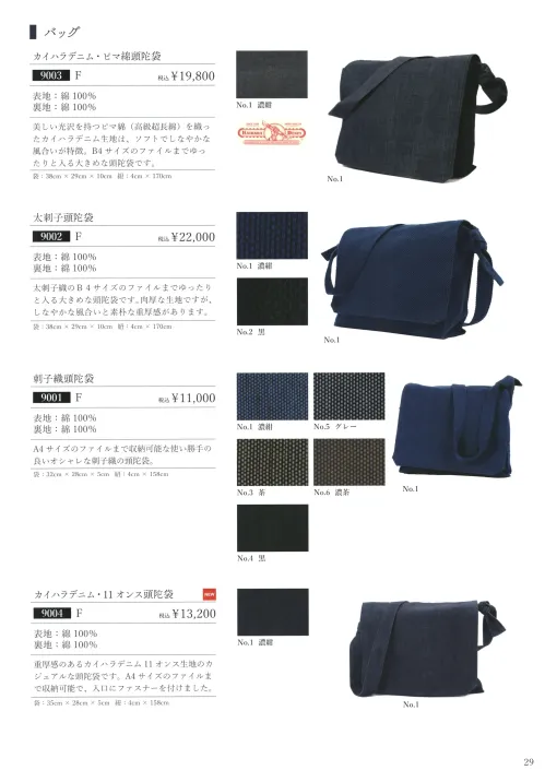 9004 カイハラデニム・11オンス頭陀袋