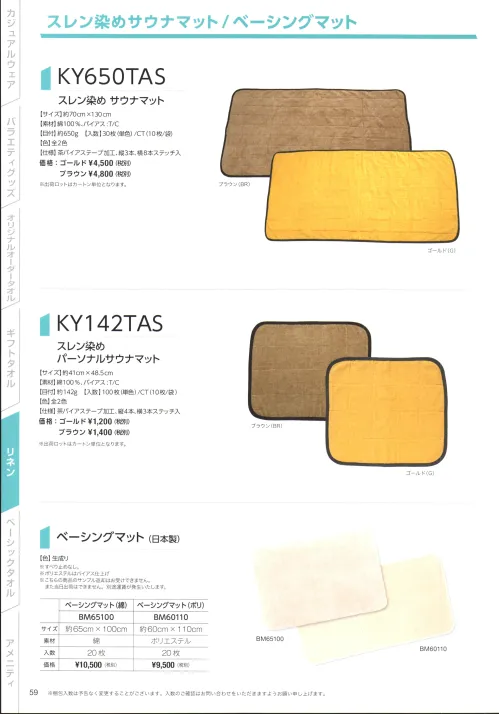 スレン染サウナマット(ゴールド/30枚入) KY650TAS-G