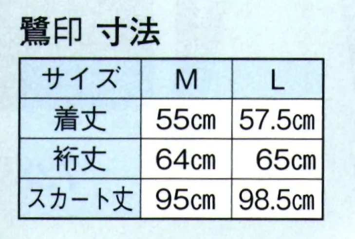 二部式着物 鷲印 日本の歳時記7906のサイズ表