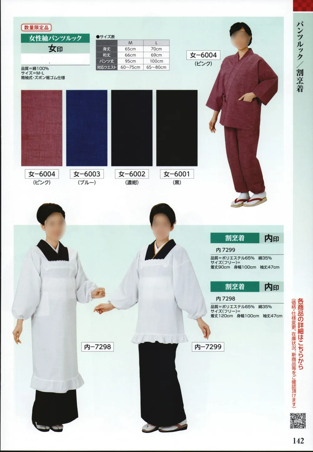 割烹着 内印 氏原7299のサイズ表