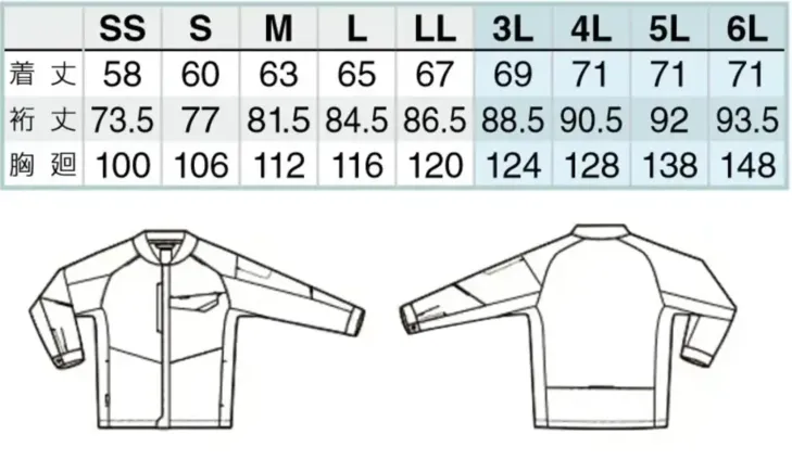 ■形状特長ショートスタンドカラー・右胸ポケット(ドットボタン付き)・ペン差し(左袖・左胸)・反射パイピング(肩、袖、背中)・脇下トリカット・ 男女兼用設計