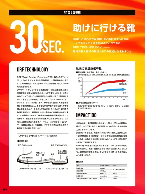 ■素材特長耐油・靴底高温熱伝導性・かかと部の衝撃エネルギー吸収性