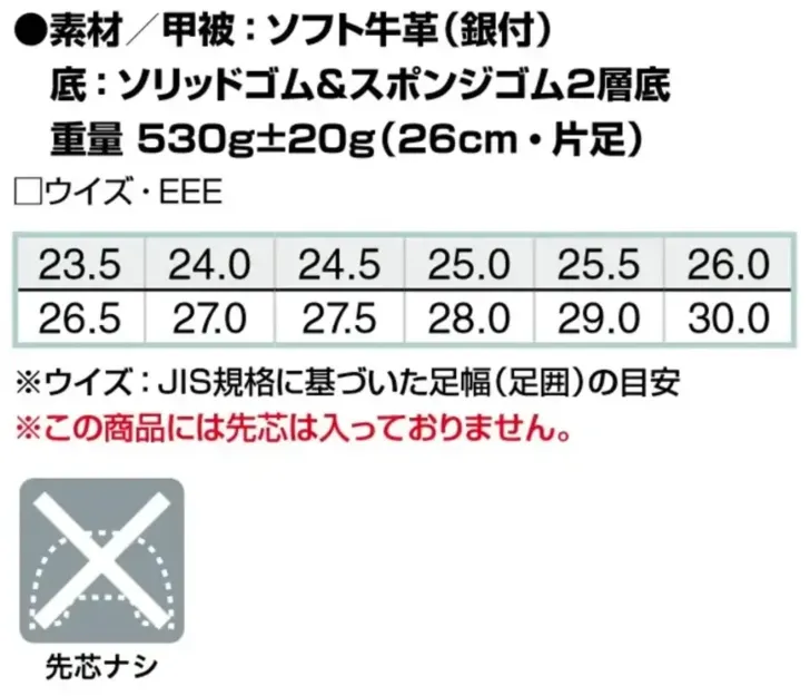 ・重量:約530g±20g(26.0cm 片足)