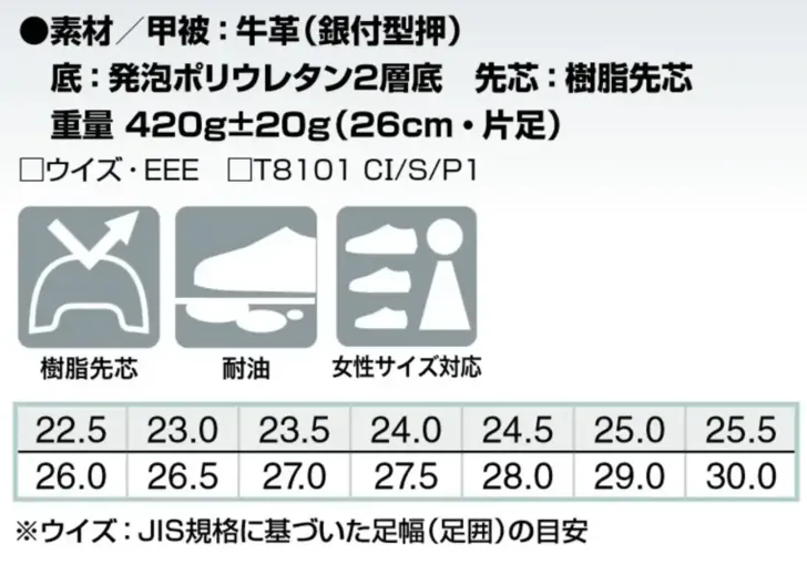 ・耐油性ソールで油による劣化を抑え安定した歩行をサポート