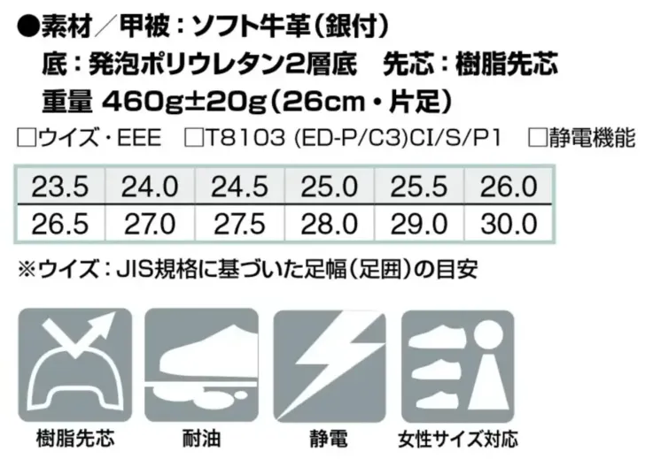 ■素材特長かかと部衝撃吸収・耐油性・静電気を抑える