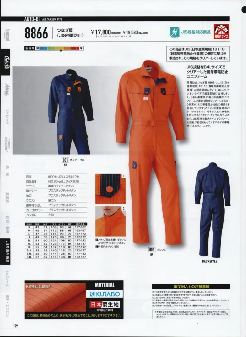 帯電防止つなぎ服(8866) 山田辰1-8866