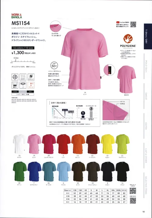 4.3オンスドライTシャツ(ポリジン加工) ライフマックスMS1154-Aのサイズ表