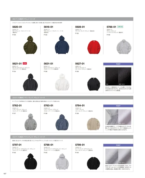 5621-01 10.0オンス T/C ボックスシルエット スウェット フルジップ パーカ(裏起毛)