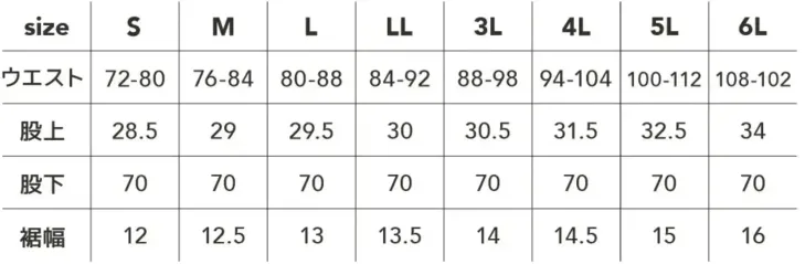 ・サイズ:S~6L