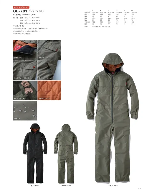 ウインパツナギ2 エスケー・プロダクトGE-781のサイズ表