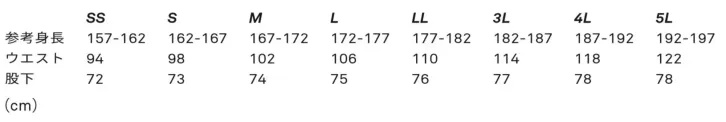 ・サイズ:SS~5L