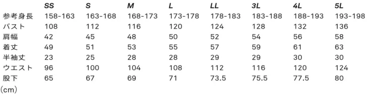 ・サイズ:SS~5L