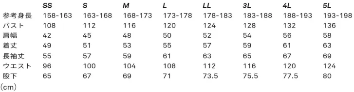 ・サイズ:SS~5L