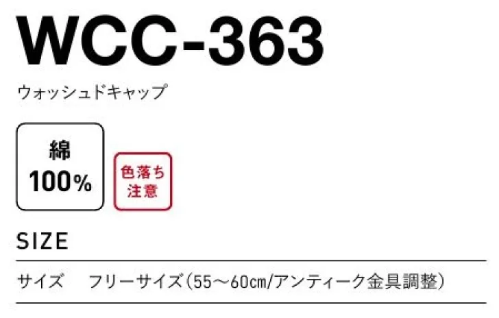 ウォッシュドキャップ フェリックWCC-363のサイズ表