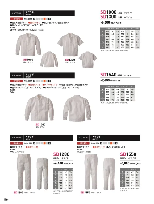 ズボン(SD1550) ソルディ(日の丸)1550のサイズ表
