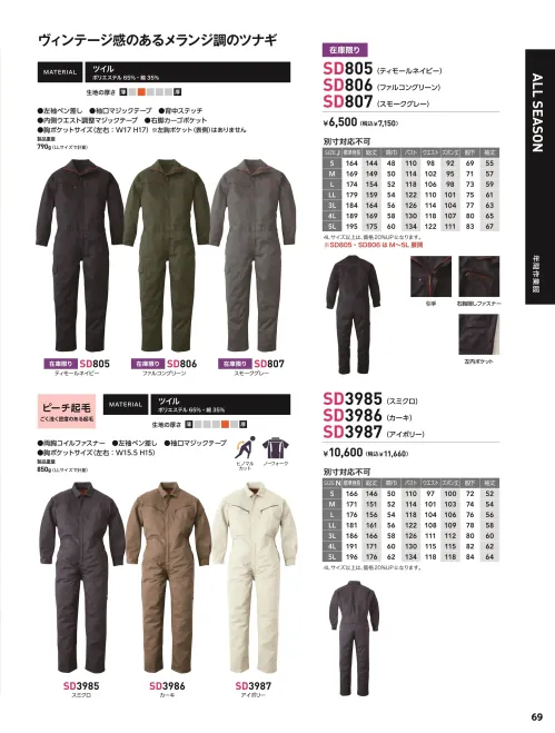 続服(SD3987) ソルディ(日の丸)3987のサイズ表